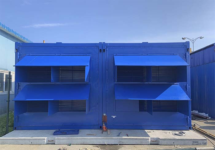 • Створки модульного здания 2 МВт с высоковольтными ДГУ распахнуты